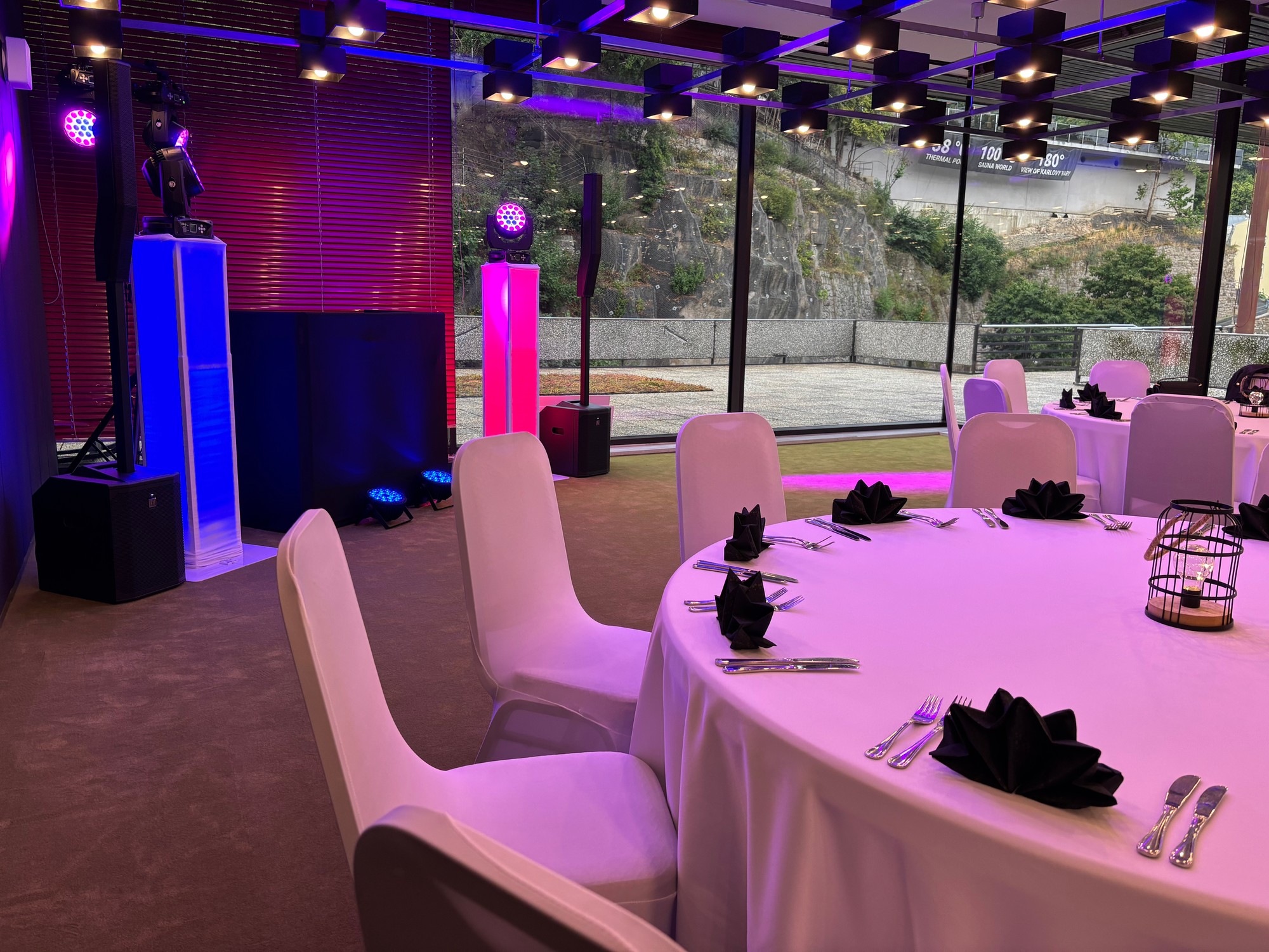 Vizuální atmosféru doladím profesionálními světelnými efekty – od decentního nasvícení prostoru po dynamická světla.